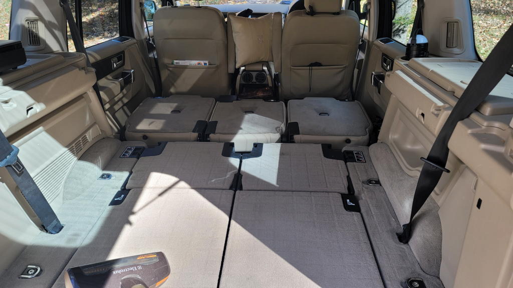 その後は車内清掃。セカンドシートとサードシートを収納してフルフラット状態にするのは年2回のタイヤ換装時だけなので(災害時には車中泊モードとなる)、丁寧に掃除機をかけた上で、ファブリーズで除菌。