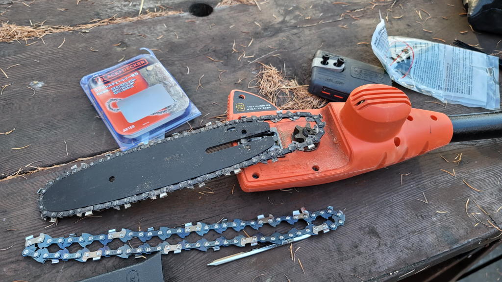 まずは、今年もお世話になった電動工具のメインテナンス。電動丸のこ盤はチップソー、高枝ポールチェーンソーはソーチェーンも交換。