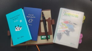 確かペンホルダーには、Rotring 600 3in1を刺していたはずだ。あのマルチペンは、太目でタフな上に、軸が六角形で転がらないので屋外の使用で重宝していたんだよな…