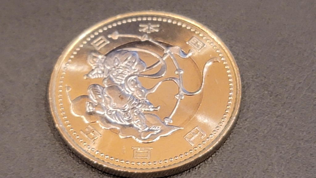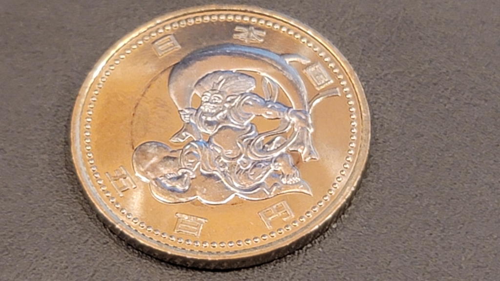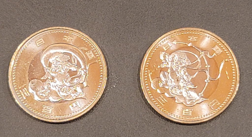 が、今日の昼過ぎになって改めてじっくり眺めてみると、500円硬貨の2枚は「風神」と「雷神」がモデルでとってもお洒落だ。