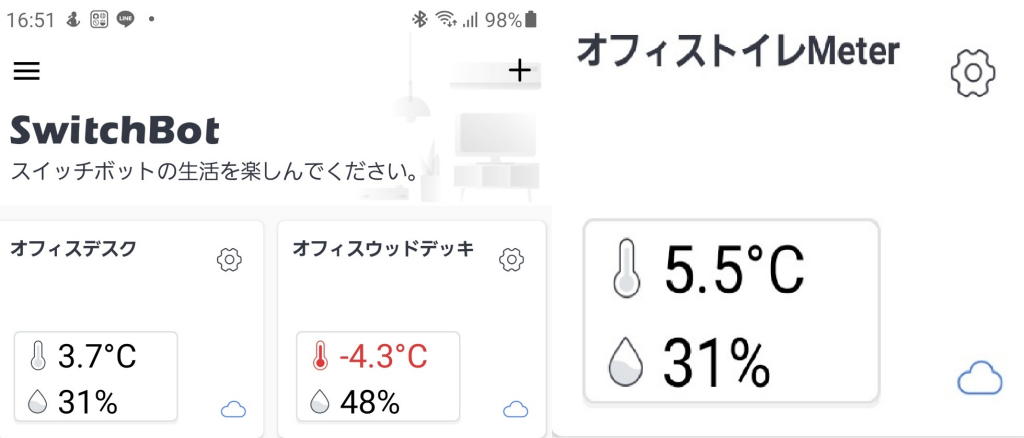 気温はどの位だろうか? オフィスのデスク上に置いたセンサーは3.7℃を表示。ウッドデッキに置いた室外センサーはマイナス4.3℃だった。