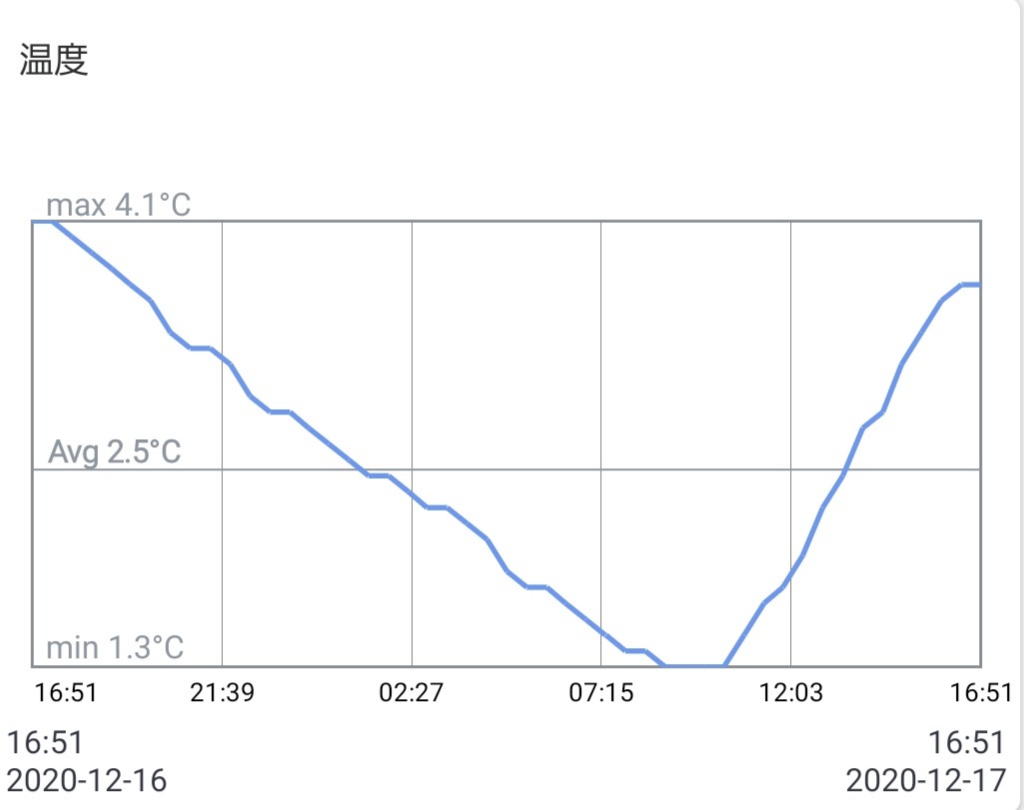 そこで、まずはデスク上のセンサーの温度推移をチェック。朝の8時過ぎを底に温度が上昇し、午後4時頃から再び下降に転じた事が確認できた。自然な動きだな。