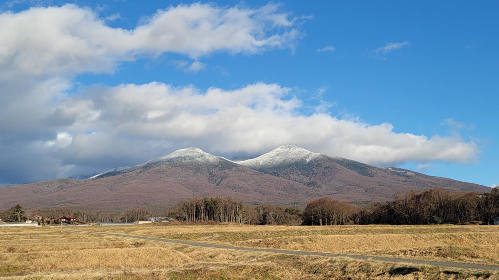 本郷のお気に入りのスポットから撮影した八ヶ岳は、ちょこっと白い帽子をかぶった程度の風情。