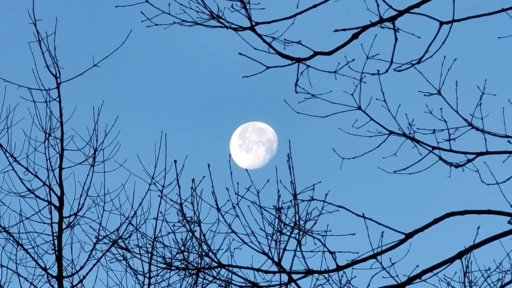 氷点下のオフィスウッドデッキに出て、この淡く美しき月を愛でた。