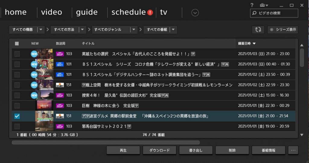 ああでも、nasneがきっと録画してくれているなと思い、デスクトップPCでアプリを開いたら、しっかりとフル録画できていた。