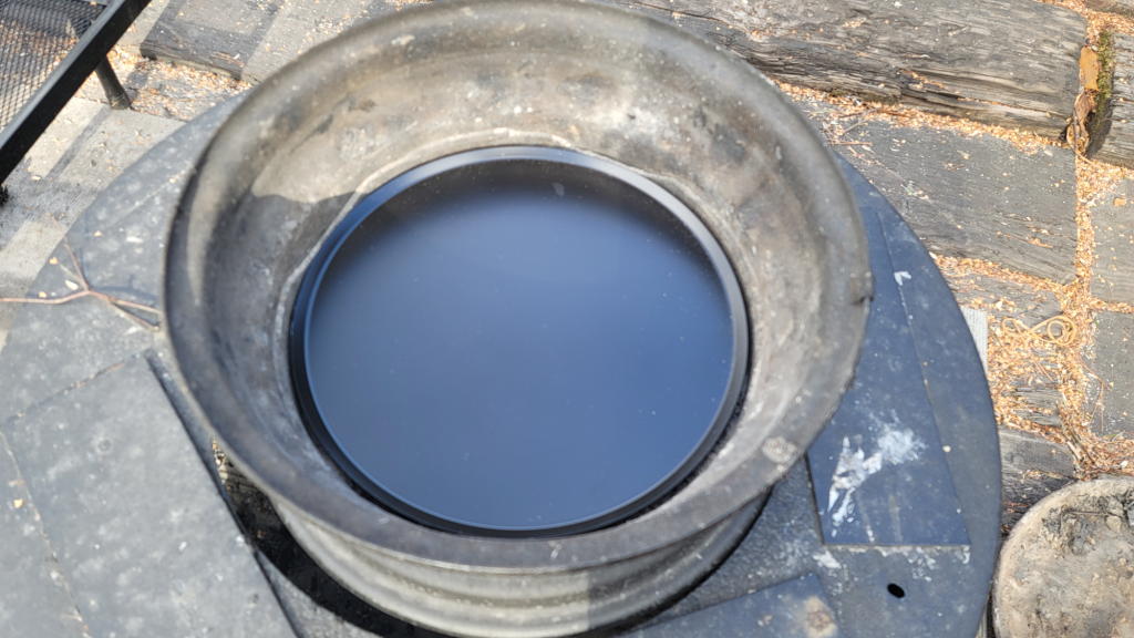 使用開始から1年2ヵ月、元々は普通のピザパン。焚き火の受け皿として酷使に耐えて、よく頑張ってくれたものだ。正に「寿命」である。