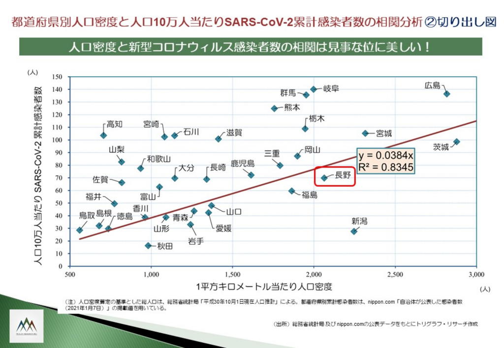 このグラフを見れば、私がこれまで何故「長野県」を信用してきたのかは想像がつくだろう(回帰線に対してしっかりと下方乖離)。
