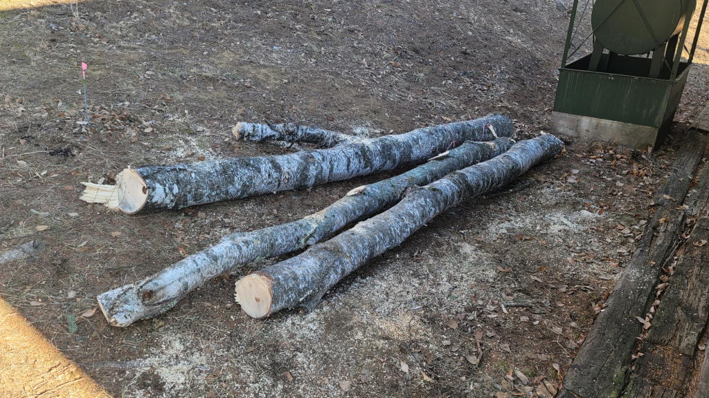 伐採した木の中で唯一「広葉樹」である「白樺」は、幹の部分も3分した上で本宅の脇に置いてもらった。これは薪ストーブで使うためである。