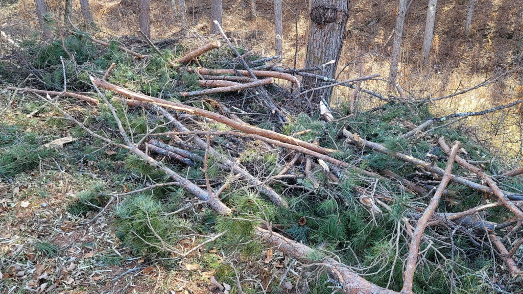 枝葉の部分は敷地の東側に積まれていたのだが、結構、太い枝もあった。