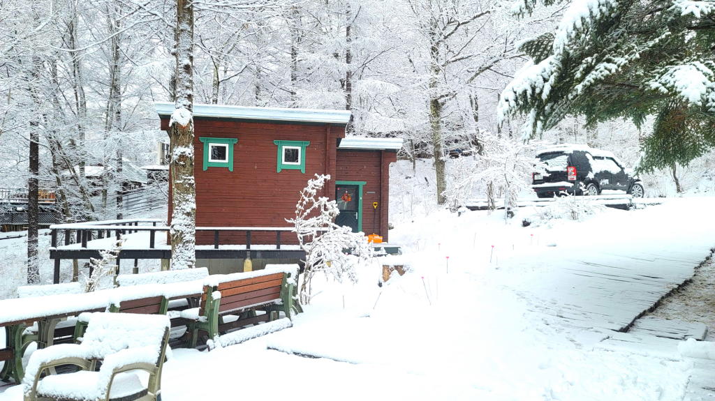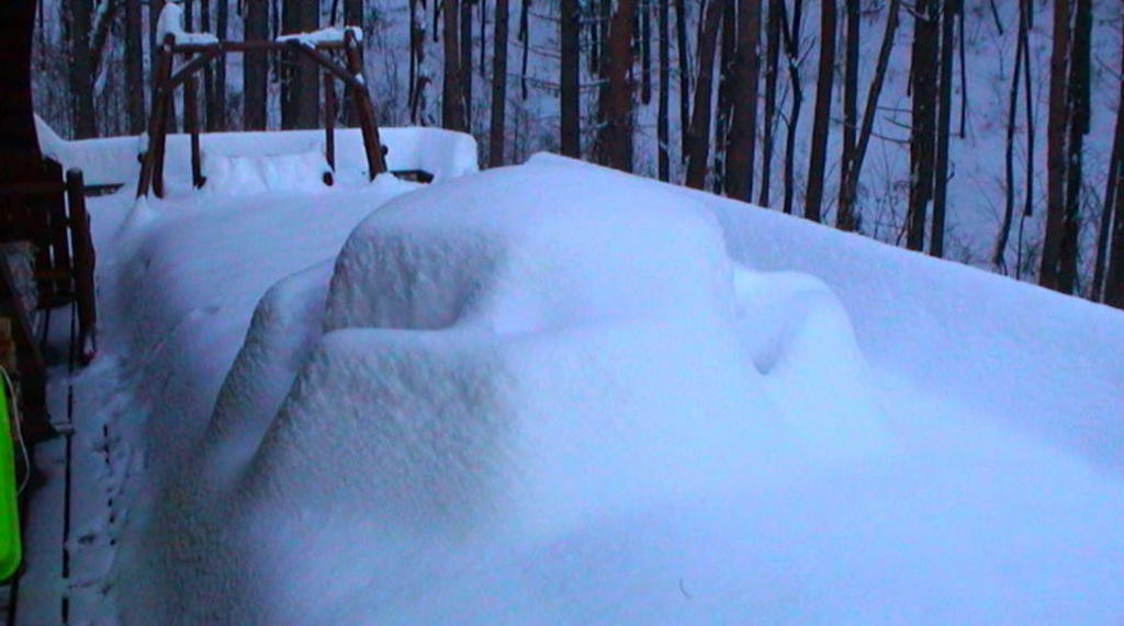 枕木350本を調達して、駐車場⇒スロープ⇒テラスと増設していったのはこの年のGWだったので、雪に埋もれた写真の下には何も構造物はないはずである。