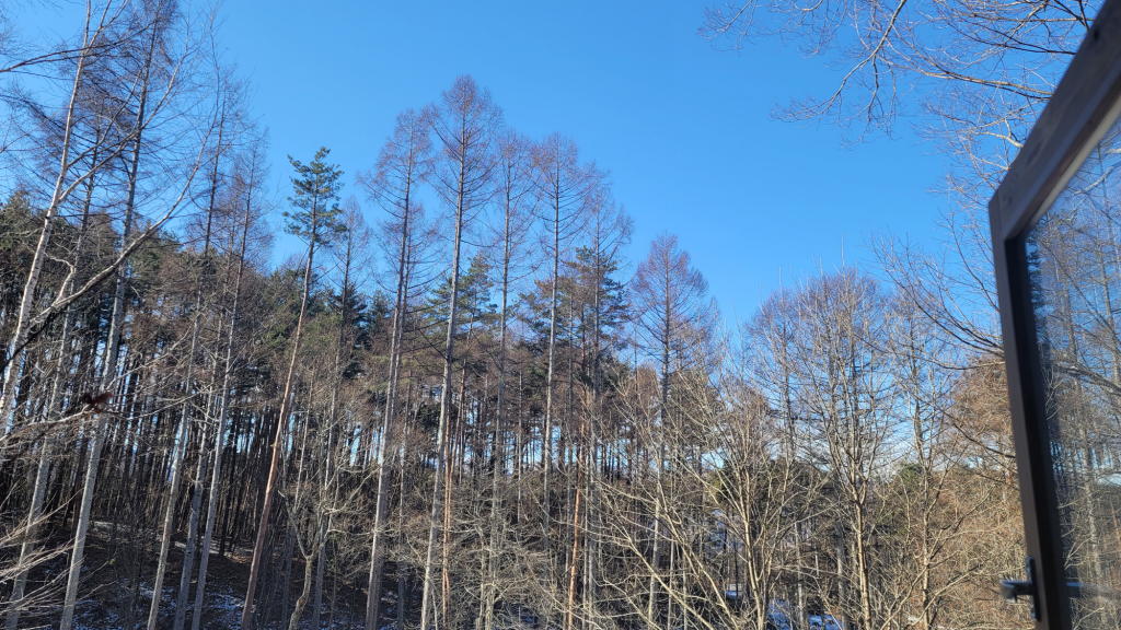 そんな事を考えながら、ウッドデッキに出て深呼吸。八ヶ岳ブルーの空の下、白樺の幹が美しい。