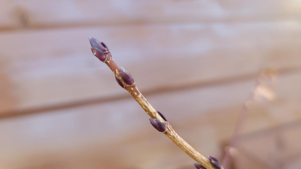 この春に庭に移植する予定の楓の木々には「新芽」が芽吹き始めていた。