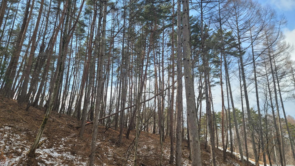 この「冬の森の風情」にちょっと好奇心を刺激されて、財産区林の中も散策することにした。