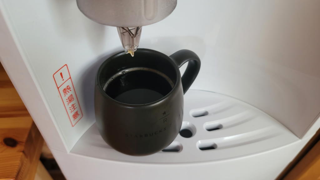 タンク容量にほぼフルの水を入れて、珈琲豆は計量スプーンで5杯。そうすると、大きめのマグカップで3杯分強の美味しい珈琲を淹れてくれる。
