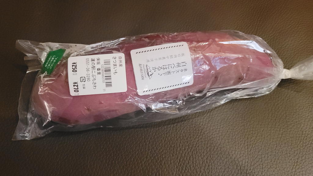 だが、所用で「道の駅こぶちさわ」に立ち寄ったら、野菜販売コーナーでサツマイモが売っていたのである。