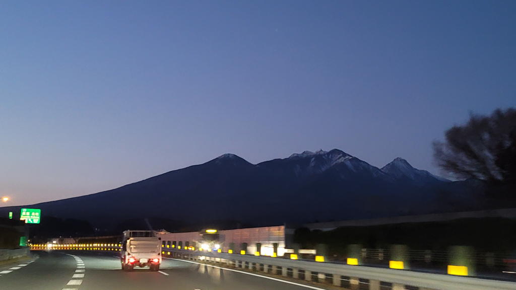 ふと気が付くと、もう長坂IC手前の「雄大な八ヶ岳」が出迎えてくれるお気に入りスポットに差し掛かっていた。今日は助手席なので写真をパチッ。