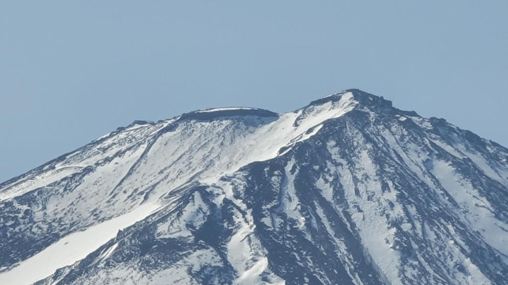 そんな銀行アナリスト的な「読みの作業」をしながら、社主さまのお買い物をD4車内で待っていた。ふと窓の外を見ると、大きな白い山が存在感を誇示していた。