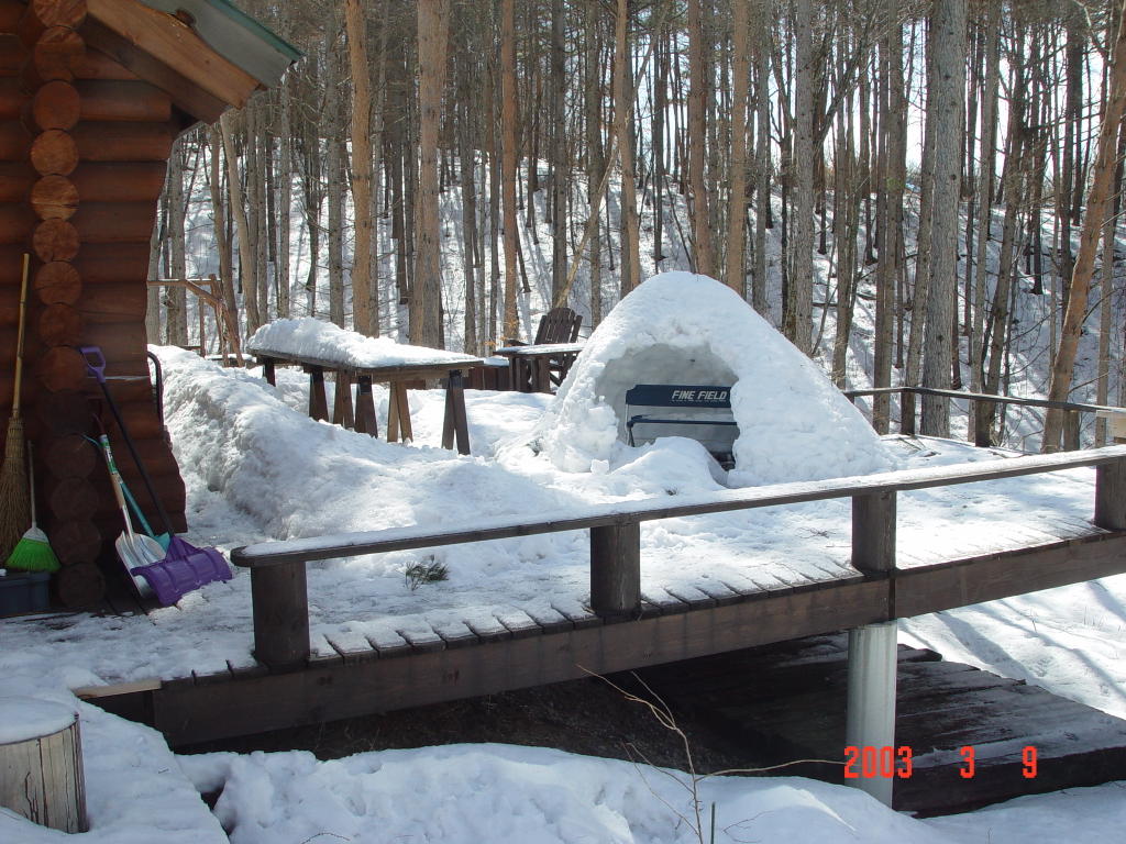 現在とは正に「別世界」だ。メインウッドデッキの上には「かまくら」があるし、庭は深い雪に埋もれている。