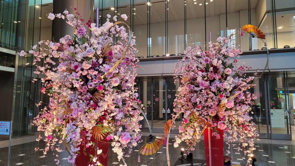 幸い、今日の講演と講演の隙間時間に訪れた「神田明神」の桜の写真と泉ガーデンタワーのエントランスの「花のオブジェ」の写真があった。