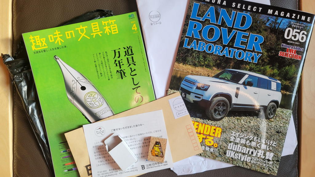 お昼前に届いた郵便物は「Land Rover Laboratory(LRL)」と「趣味の文具箱」だった。仕事の合間に読む「趣味の雑誌」の組み合わせとしては最高である!