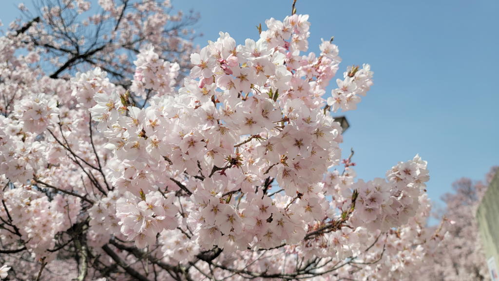 そんな状況が一変したのは、南口ゲート近くまで進んだ時だった。もうそこは「別世界」。正に「桜満開」の状態だった。