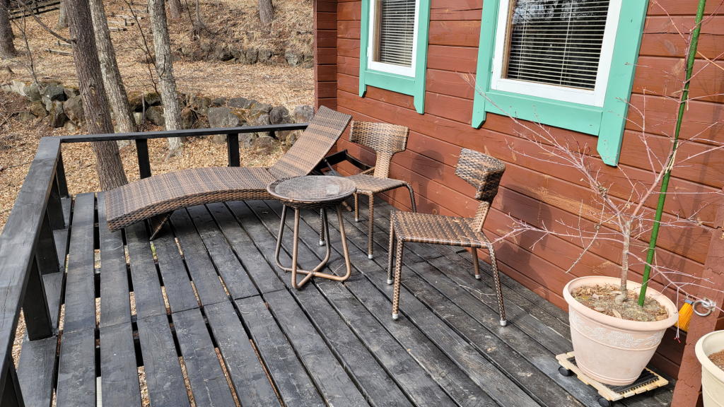 続いて、オフィス地下室からガーデンファニチャー類を引っ張り出してウッドデッキに並べたりと、正に「雑事」の連続だ。