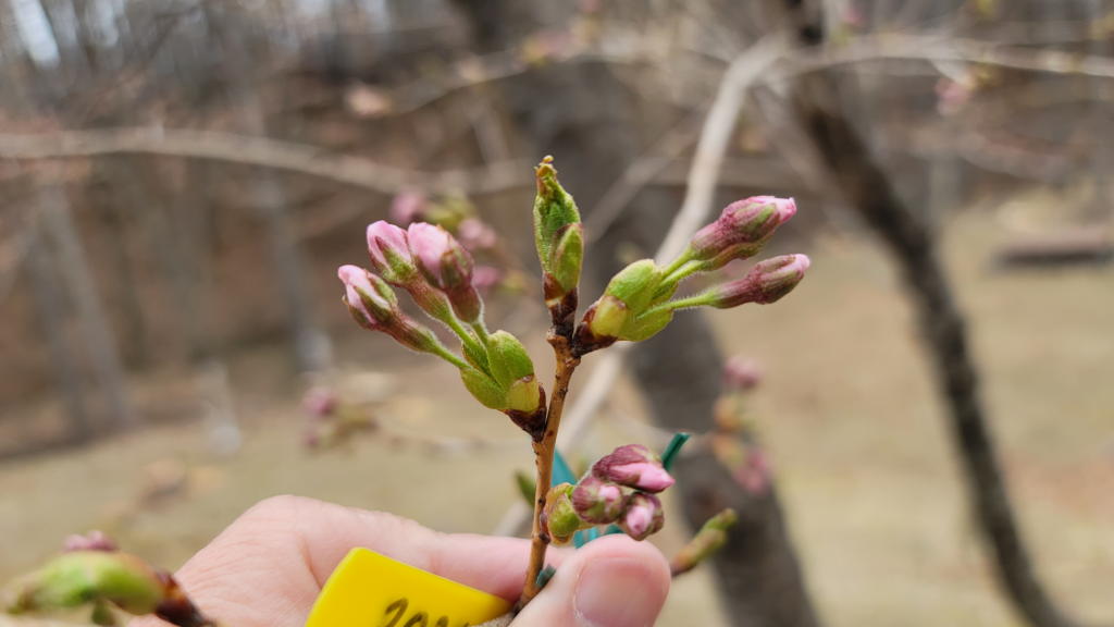 我が家の「異形のソメイヨシノ」も蕾が開きそうで開かない。