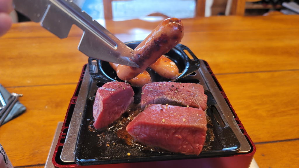 焼き始めから25分程で、用意した食材(シャウエッセン6本+ステーキ肉250g)をすべて平らげてしまった。
