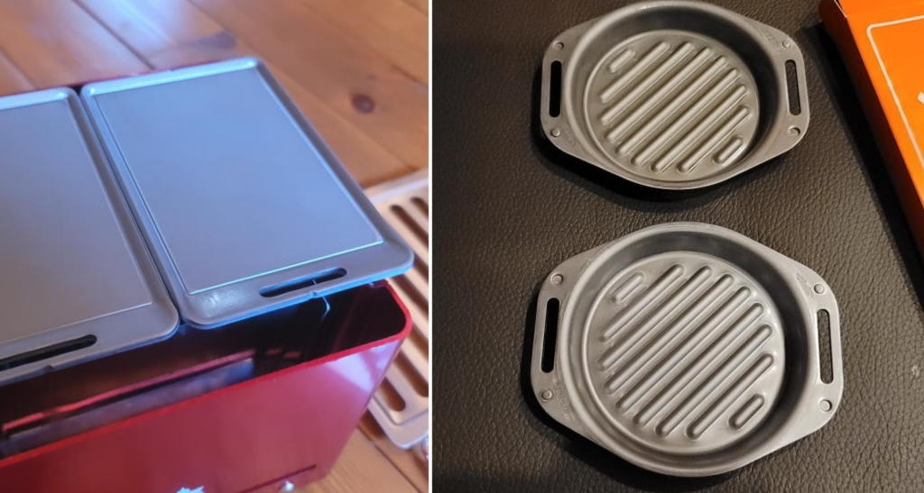 2枚ずつある肉厚鉄板miniと肉厚グリルパンは、丁寧なシーズニングを施したので見事に黒光りしている。