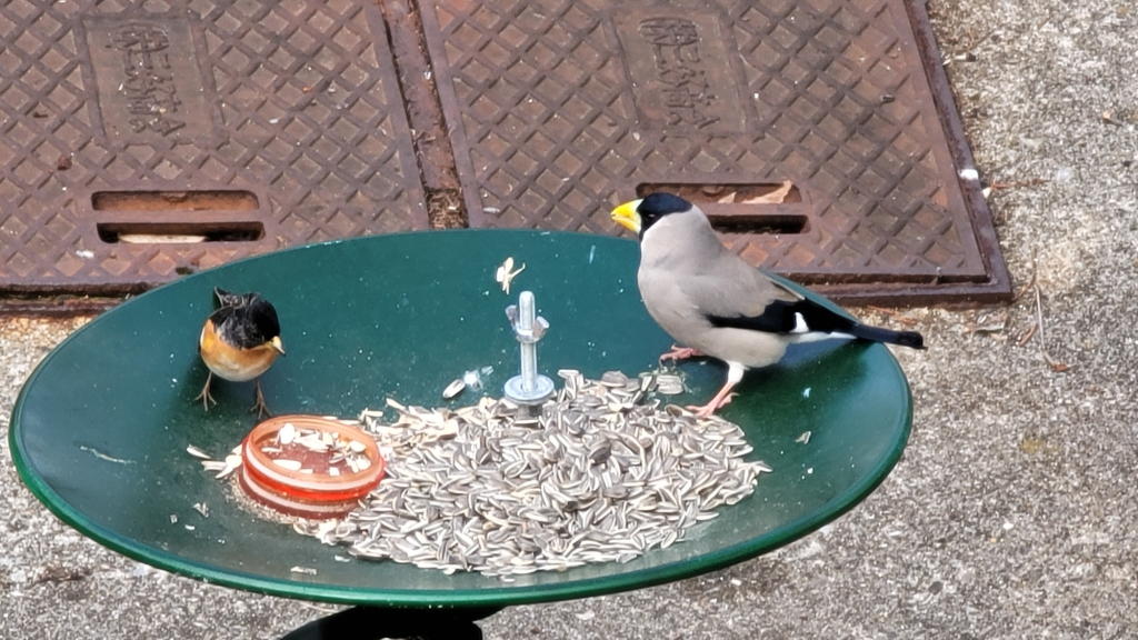 2日に1回は、朝食の前に野鳥さん達にヒマワリの種を給餌する。今日は給餌日だ。