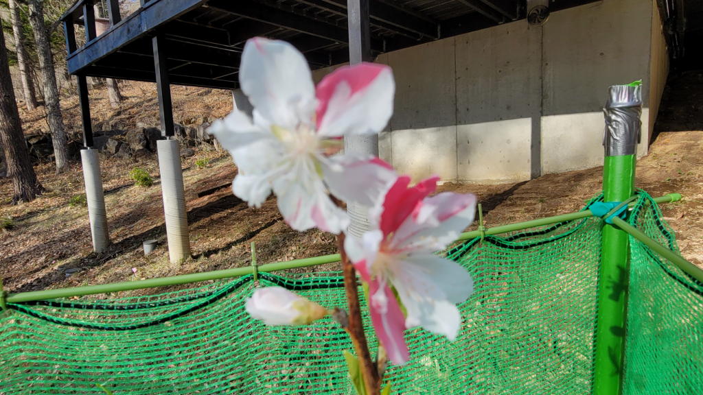 加えて、鹿軍団から守らねばならぬニューフェイスもいらっしゃる。阿智村の「花桃の郷」を訪れた際に、花桃の苗木を1本購入してきたのだ。