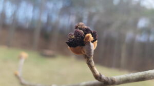 小雨の中、夕方、庭を散策。例年であれば、まだ新芽を出さないような木々まで芽吹き始めている。