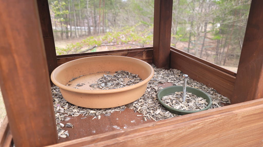 結局、スタッドレスタイヤを洗って保管したのと、野鳥さんの給餌台の清掃程度の作業しか出来なかった。