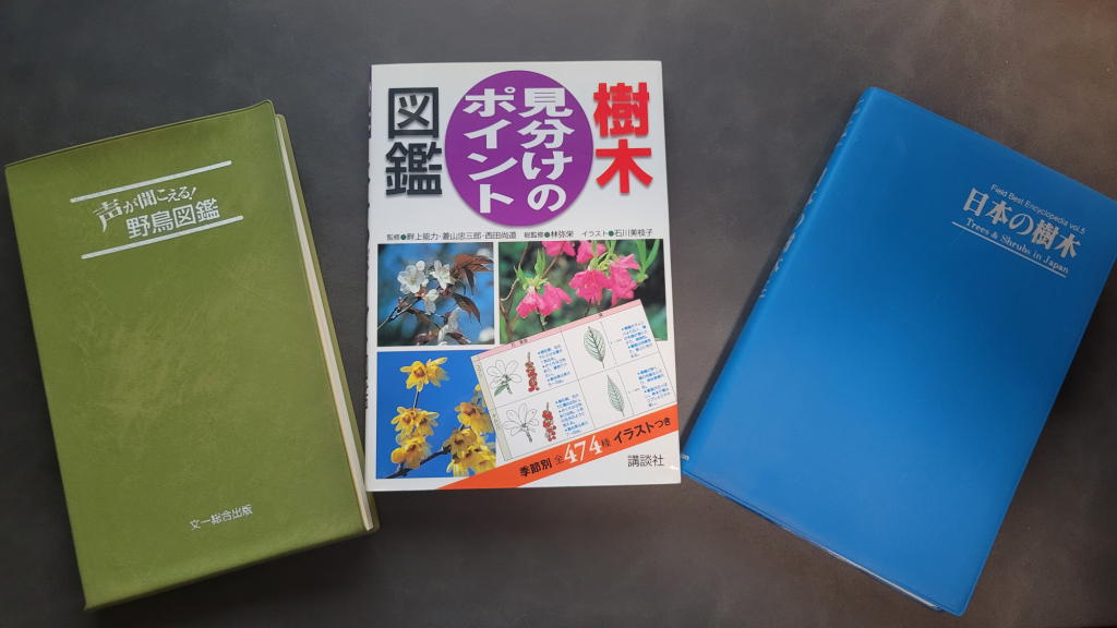 これはマズいと思い、八ヶ岳本宅のホビールーム書棚から、かつて愛用していた樹木や野鳥のハンディ図鑑を引っ張り出してきた。