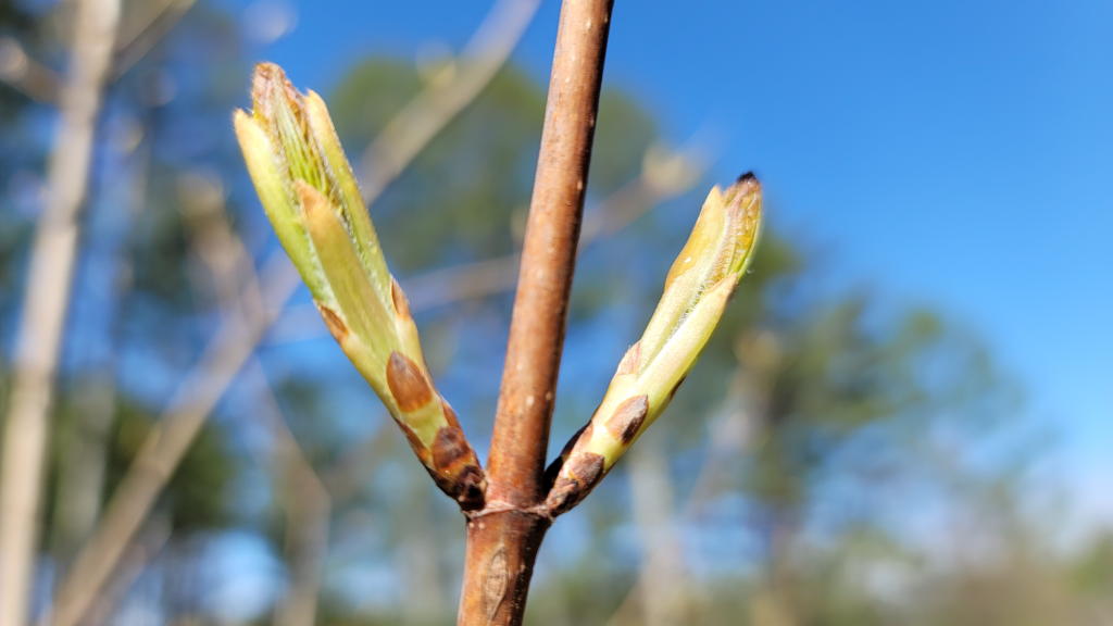 この時期の楽しみのひとつに敷地内を散策し、様々な木々の新芽が日に日に大きくなるのを観察する事にある。