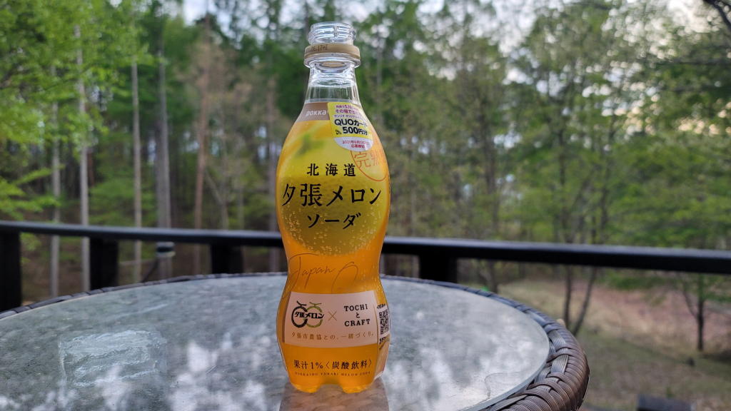 傍らには「北海道夕張メロンソーダ」。鹿の湯の「富士見マート」に並んでいるのを見つけて、珍しかったので思わず3本購入。