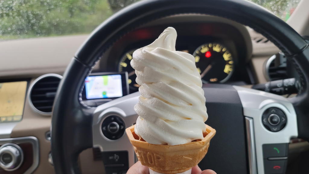 やっぱり、鹿の湯のソフトクリームはレベルが高いな。うん、これでかなり落ち着いてきぞ!