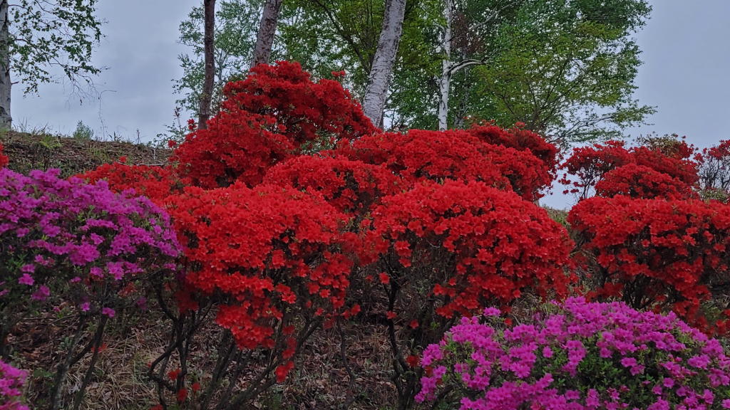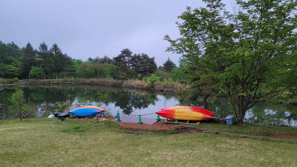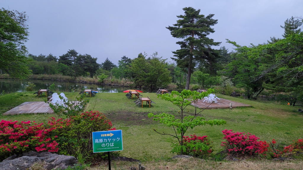 ツツジが綺麗だな。鹿の池では、カヤックを楽しめるようになったんだ。