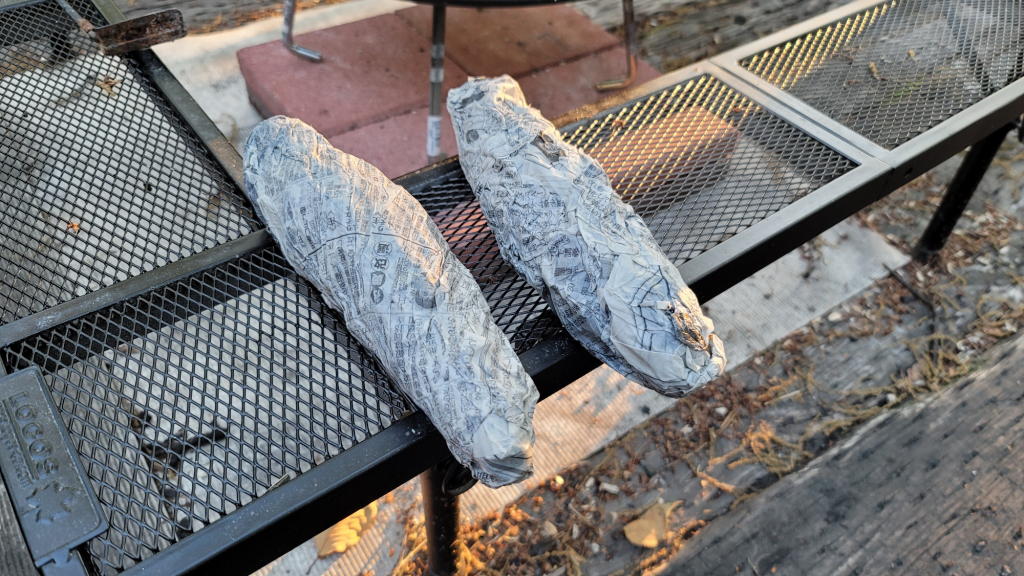 それ以外については、初回の成功に従って、濡れ新聞紙で包んだ後、アルミホイルを巻いた。
