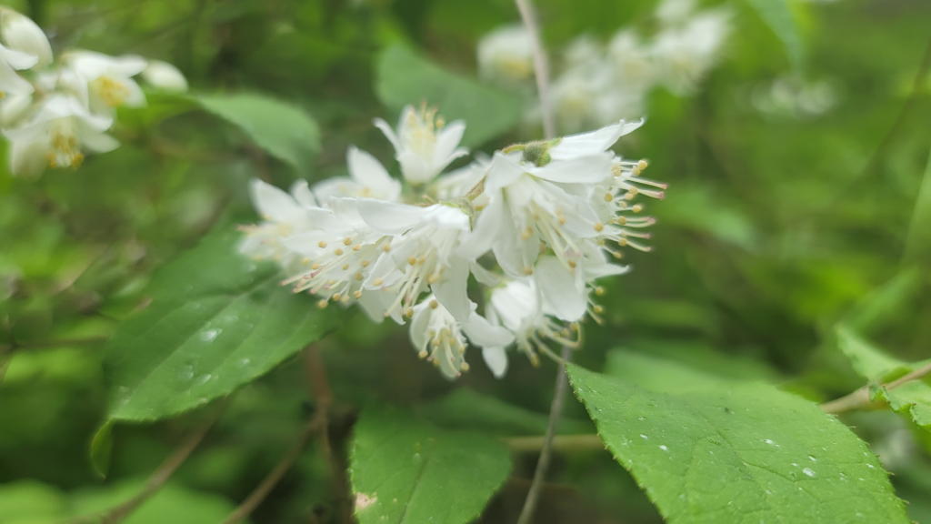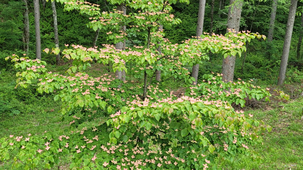 まずは、2本植えてある「ヤマボウシ」の開花が始まった事が目を引いた。