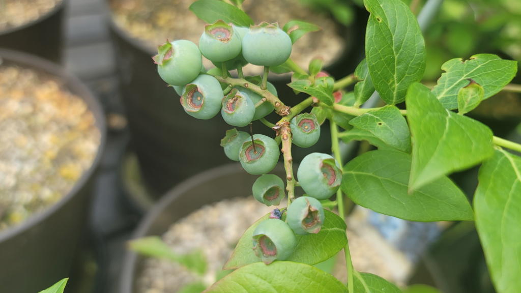 昨年から「守られる立場」から「恵みを与えてくれる存在」に変わったブルーベリーちゃん達は、どんどん実をならせている。