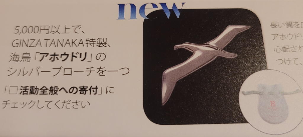 ビジネススーツのお供である「野鳥の会シルバーブローチ」の利用も減ってはいるが、新作が出たら必ず寄付(購入)という仕来りをやめるわけにはいかない。