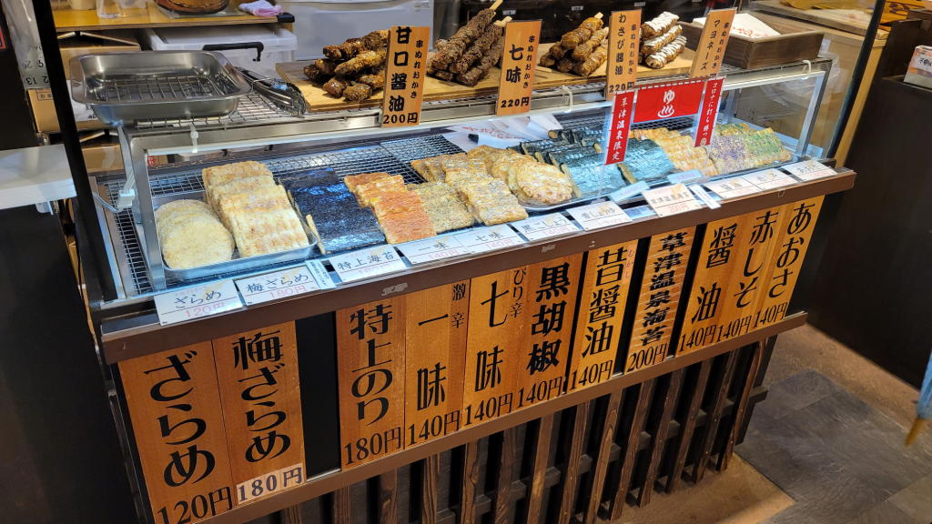 その後は、温泉街の商店通りをぶらぶらと散策し、最後に「寺子屋本舗」でお好みの手焼き煎餅を買うというのがお決まりパターン。