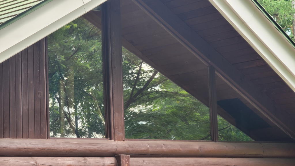 昨日の夕方5時頃、八ヶ岳本宅の外部収納スペースに設置している黒ニンニク製造器の温度と残り時間を確認していた際に、私の右上方、本宅ガラスに何かが激突した。
