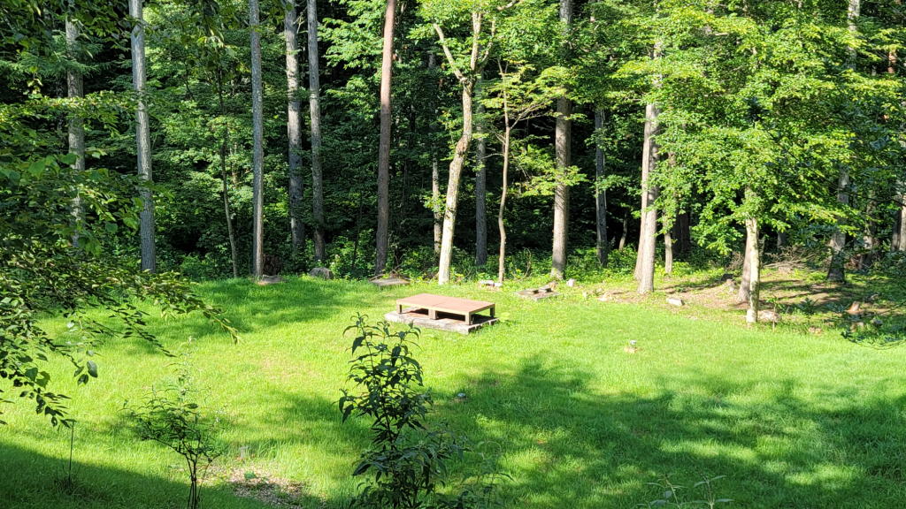 枕木テラスは、夕方の焚き火用にしよう。