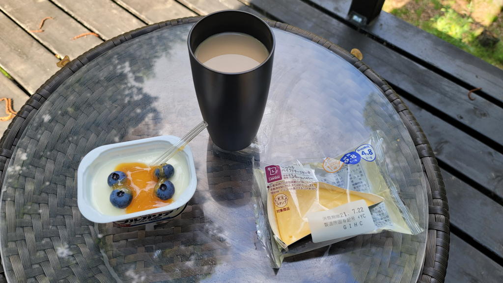 朝食は、珈琲とローソンのロカボ系パン、それに低糖ヨーグルトだけと決めている。