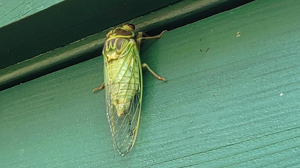 ドアノブに手を掛けた際に、上部に羽化したばかりのセミを発見。