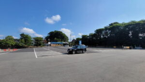 駐車場着は9時5分。