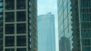 ビルを覆うガラス越しに林立する東京の高層オフィスビルが見える。昨日までの森林に守られた暮らしとは別世界だ。