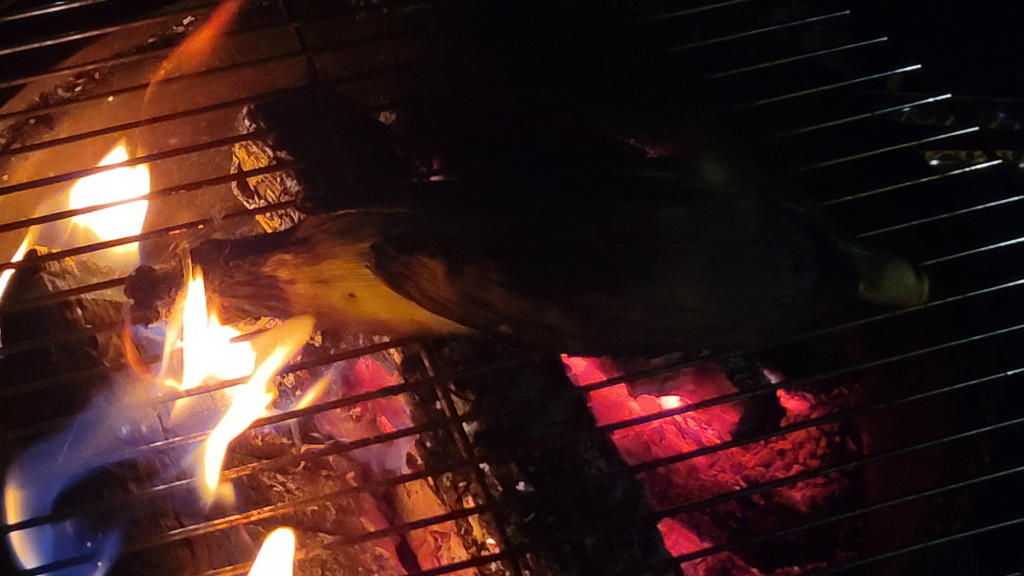 アルミホイルの上に溜まったタレが焦げて、それがトウモロコシにまとわり付き始めたのだ。おっと、気をつけなくっちゃ…